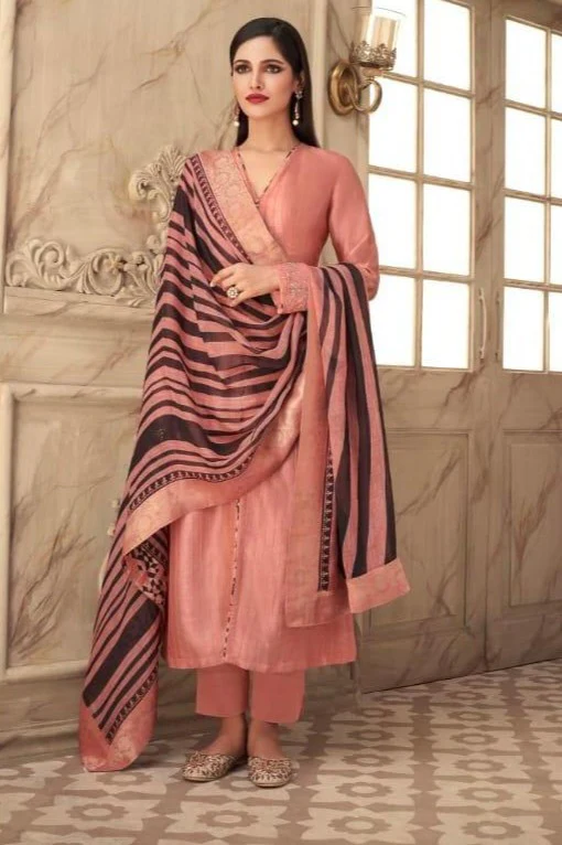 Peach pink Design Silk Kurta With Dupatta