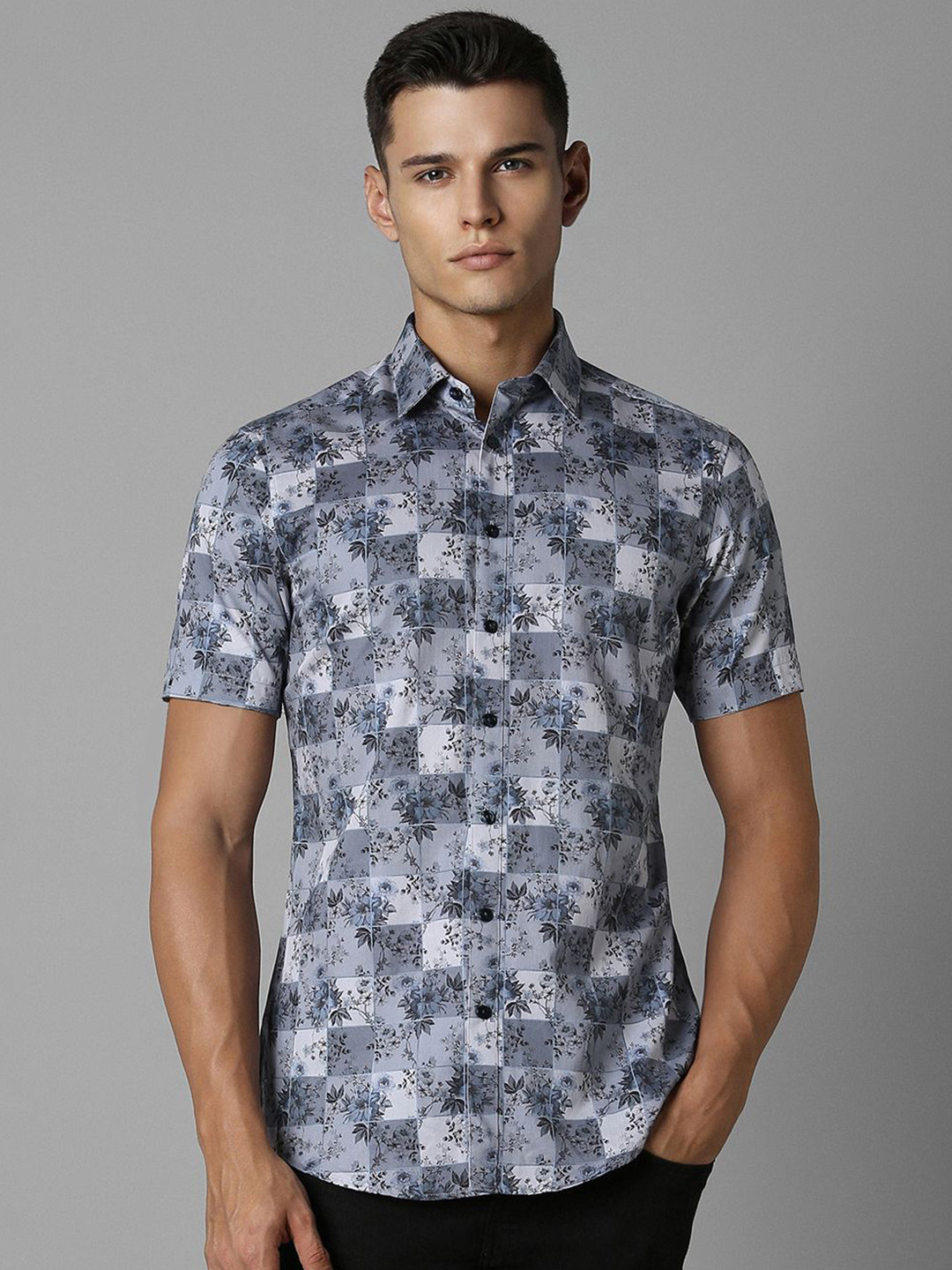 Men Light Blue Classic Fit Print Full