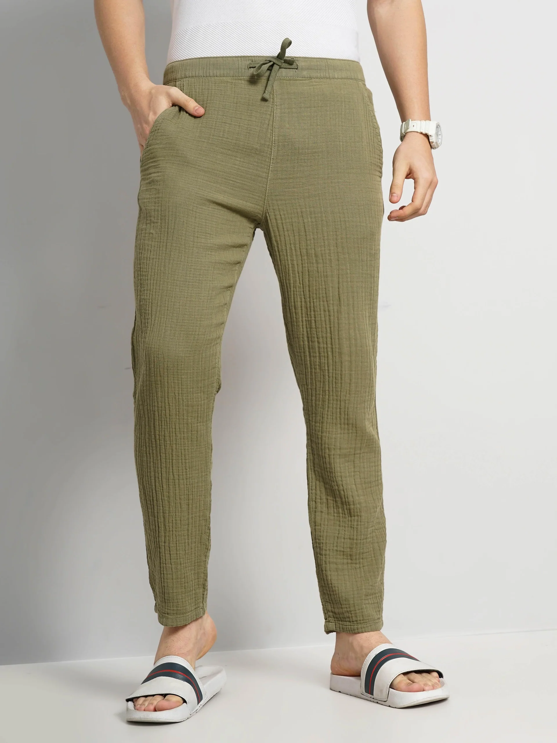 Men White Solid Regular Fit Lower